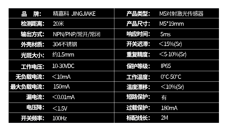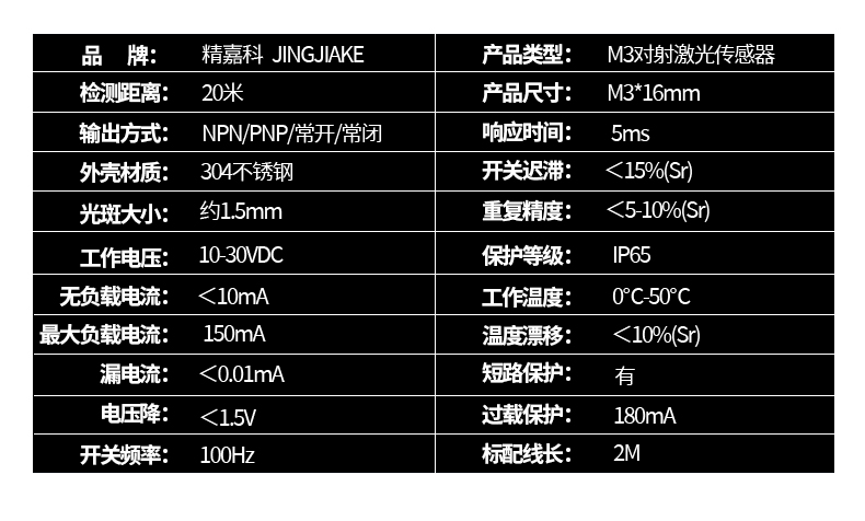 • 检测物不论近远,光斑不扩散,光斑大小不改变。